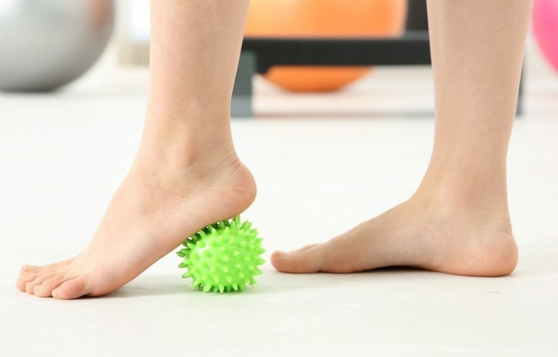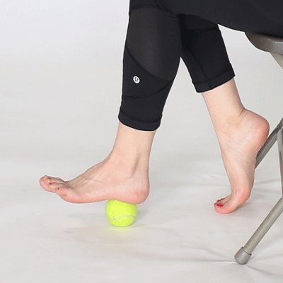 – Pon tu pie encima de la pelota de tenis y hazla rodar, aumentando o disminuyendo la presión según sea necesario.