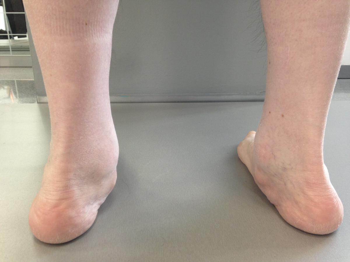 Paciente que acude a consulta con dolor en zona de interna del tobillo (tendinitis del tibial posterior) con un acusado pie plano valgo acompañado de síndrome de Marfan.