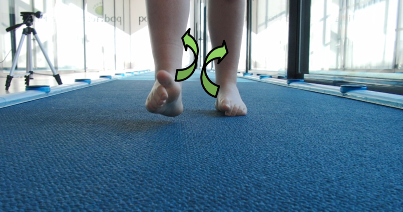 El cuarto ejercicio consiste en realizar la marcha de forma que sometamos a tensión los músculos de la zona interna de la pierna. Enseñaremos al niño a caminar sobre el borde externo del pie, desde el talón hasta el 5º dedo, y avanzar por una superficie lisa sin irregularidades. Habitualmente no tiene contraindicaciones, pero cabe destacar que es una posición forzada del pie, y puede resultar dolorosa en determinados niños, por lo que ante cualquier molestia referida dejaremos de realizar el ejercicio.