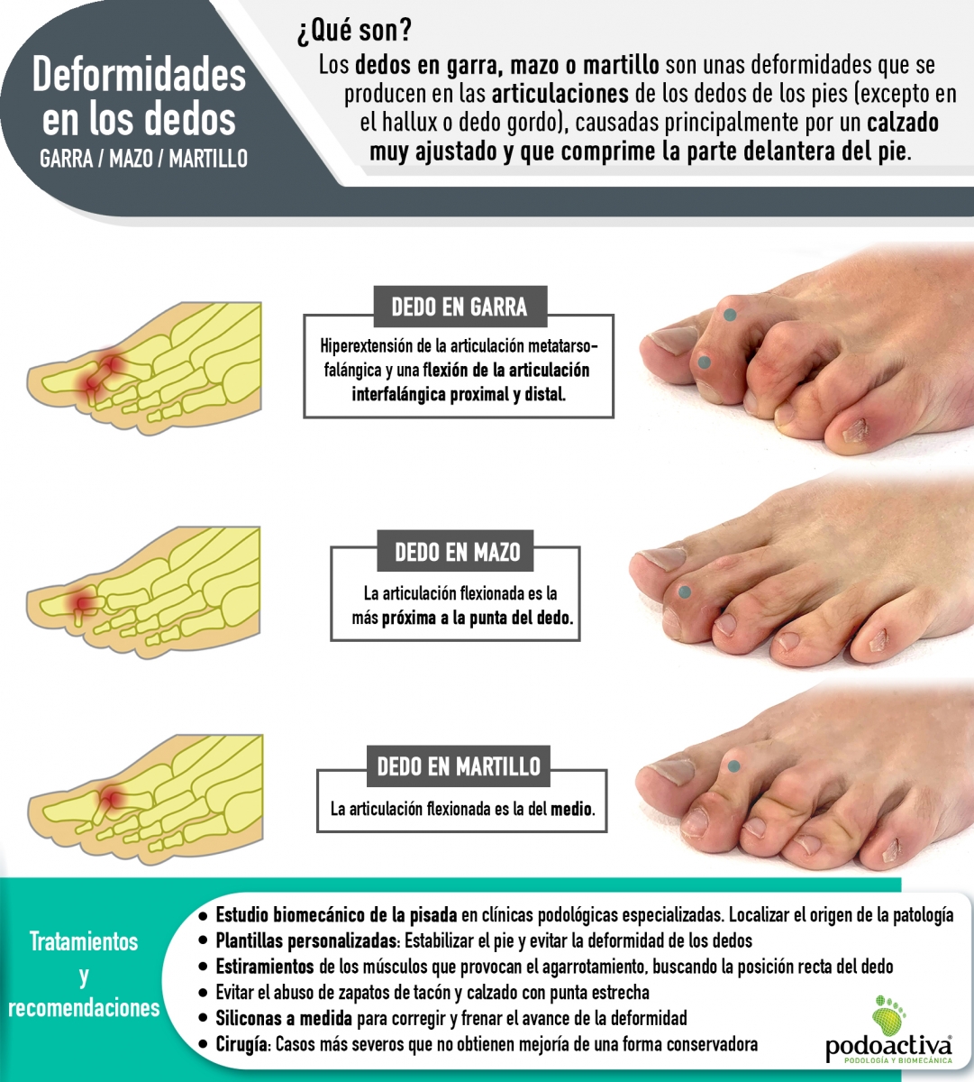 ¿Tienes o crees que padeces dedos en garra /mazo o martillo? En Podoactiva podemos ayudarte. Consulta tu clínica Podoactiva más cercana AQUÍ o contáctanos en el 974 231 280 o a través de [email protected].