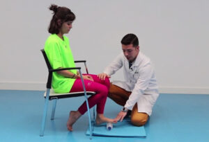 El primer ejercicio consiste en una liberación miofascial del tejido de la planta del pie, entre los que se encuentra la fascia plantar.