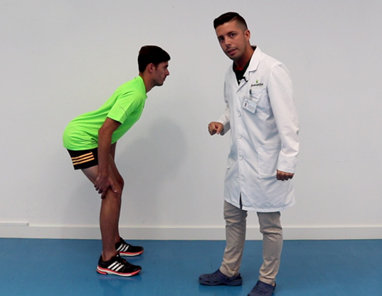 Para llevar a cabo el segundo ejercicio tendremos que colocarnos en posición de bipedestación -de pie- y flexionaremos levemente las rodillas y los tobillos intentando, además, que nuestra pelvis salga hacia atrás. Cuando realicemos este ejercicio notaremos como toda la musculatura de la parte posterior del muslo se somete a tensión.