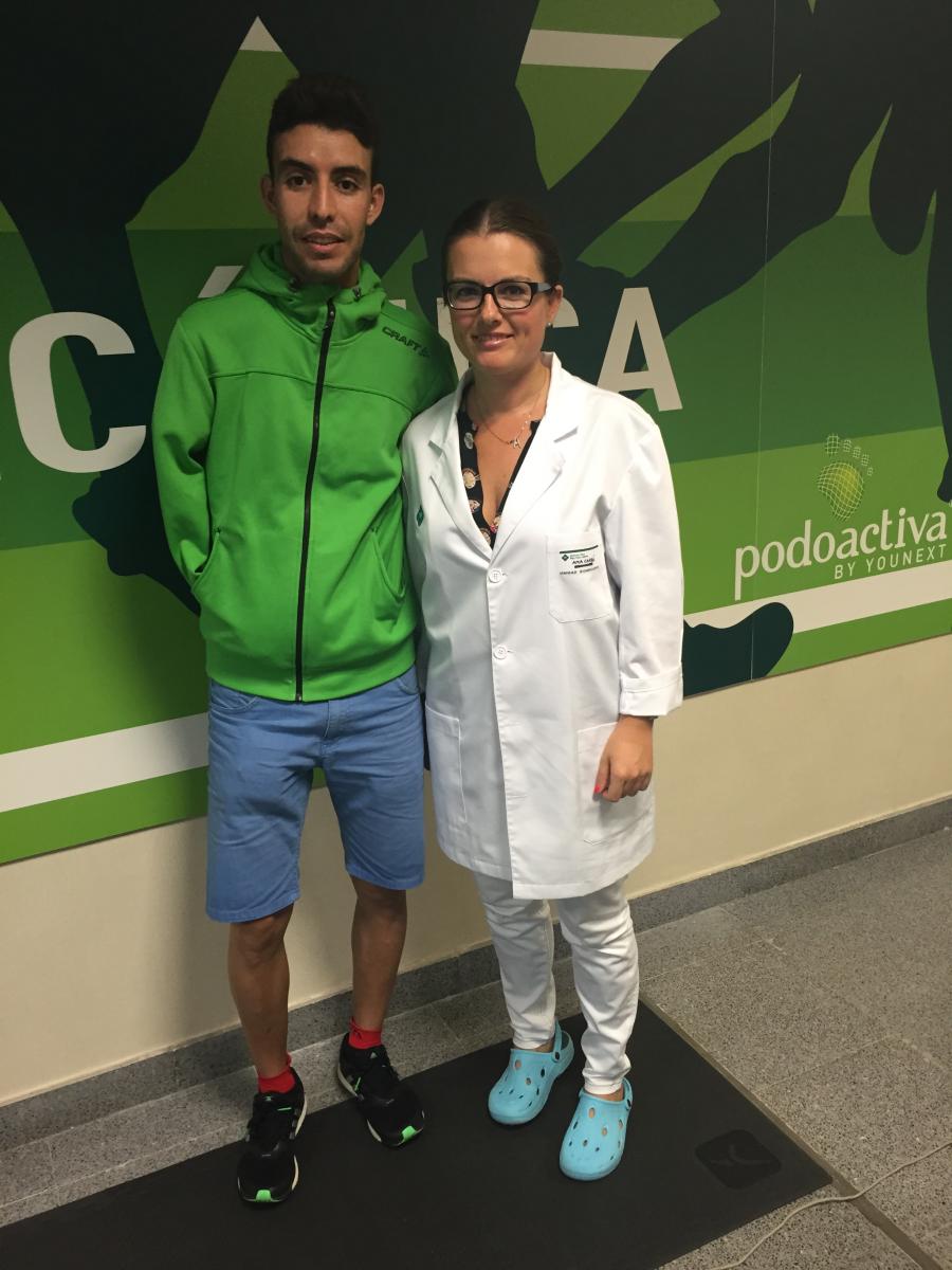 En la fotografía aparece junto a la podóloga de Podoactiva Ana Carbo, responsable de la Unidad.