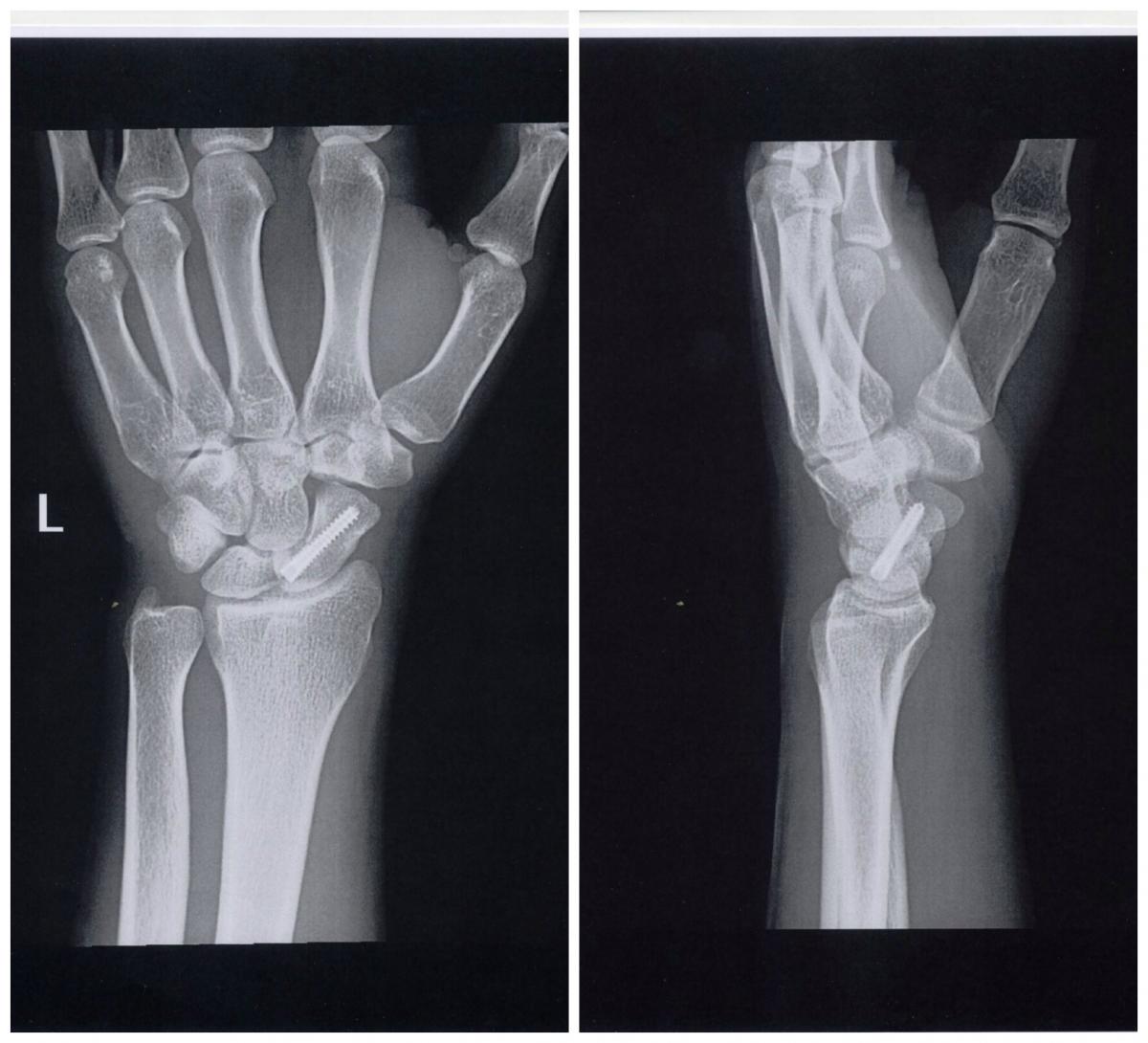 El tratamiento de este tipo de fracturas puede requerir cirugía, o no. En el caso de nuestro paciente, se sometió a una cirugía percutánea, durante la cual se utilizó un implante metálico para mantener el escafoides en su lugar hasta que la fractura suelde por completo. Además, se inmovilizó la zona con una escayola.