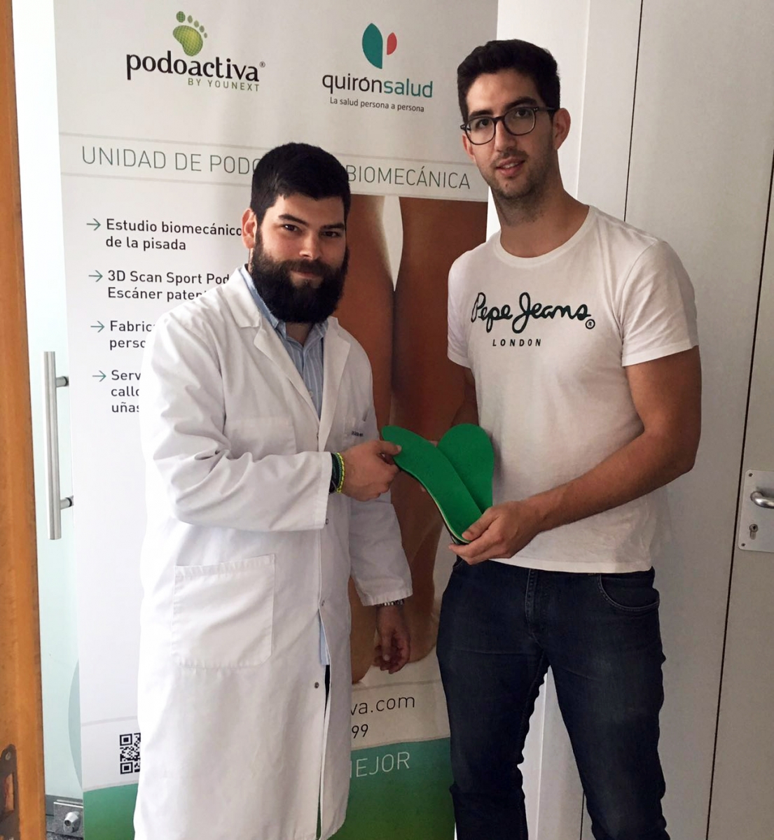 Carlos Martín, responsable de Podoactiva Zaragoza entregó al jugador sus nuevas plantillas personalizadas.