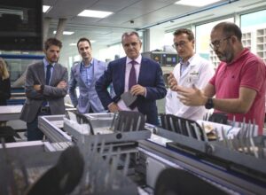 “En Podoactiva son punteros en todo, me han impresionado de forma espectacular”, confesó José Manuel Franco, tras acabar la visita. Añadió que “había oído hablar de Podoactiva, pero no era consciente de la maravilla que tenemos aquí, en lo que se refiere a podología y biomecánica. Los oscenses y los españoles podemos presumir de que tenemos una empresa absolutamente puntera en cuanto a tecnología, economía casi circular y sostenibilidad, Podoactiva lo reúne todo, de verdad”.