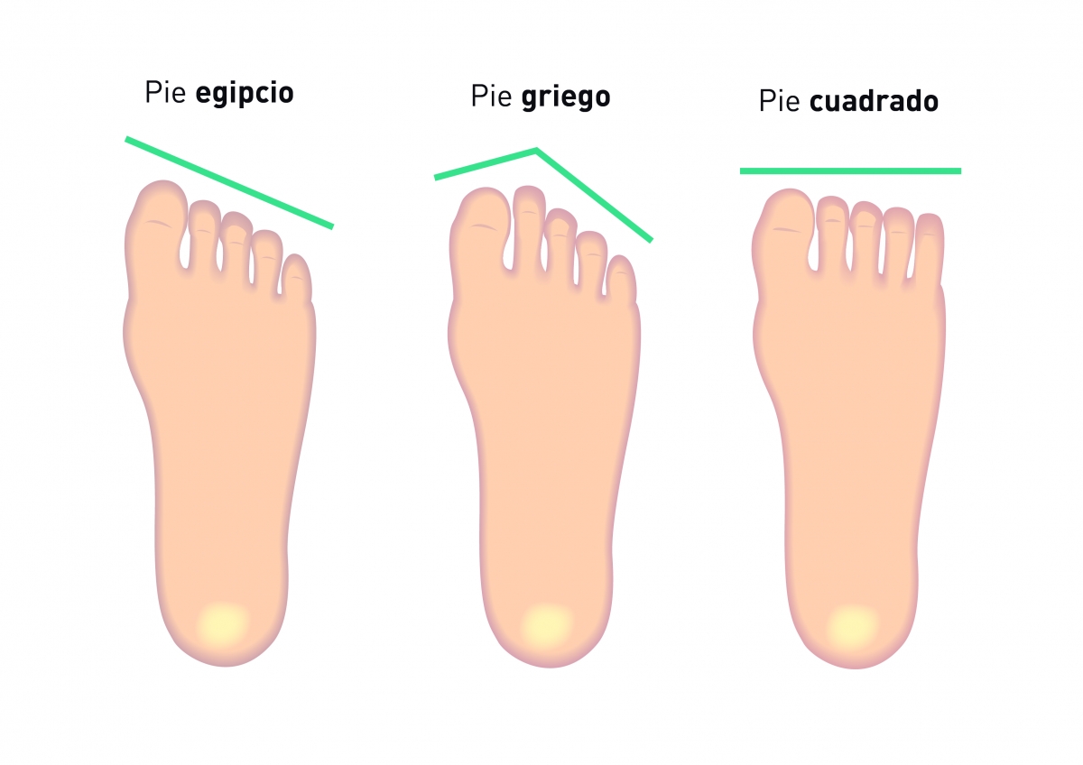 – Egipcio: El dedo gordo es el más largo y los demás dedos son cada vez más pequeños uno tras otro.