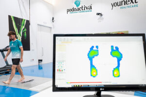 El estudio biomecánico de la pisada o marcha Podoactiva consiste en un conjunto de pruebas diagnósticas realizadas con tecnología de alta precisión que permite conocer y prevenir posibles patologías y lesiones del pie, así como su relación con otras estructuras como la rodilla, la cadera o la columna. Consta de las siguientes fases: