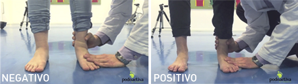 - Maniobra pasiva (VIDEO): el paciente no realiza ningún movimiento ni contracción muscular. El especialista abraza la tibia en su tercio distal y realiza una rotación en sentido interno. En condiciones de normalidad, al realizar la rotación interna se producirá un movimiento pronatorio de la articulación subtalar y un descenso de la bóveda plantar, obteniendo por tanto un resultado negativo para el test. Si por el contrario el pie no sufre cambios al realizar esta rotación interna tibial, nos encontraremos ante un pie máximamente pronado con resultado positivo para el test.