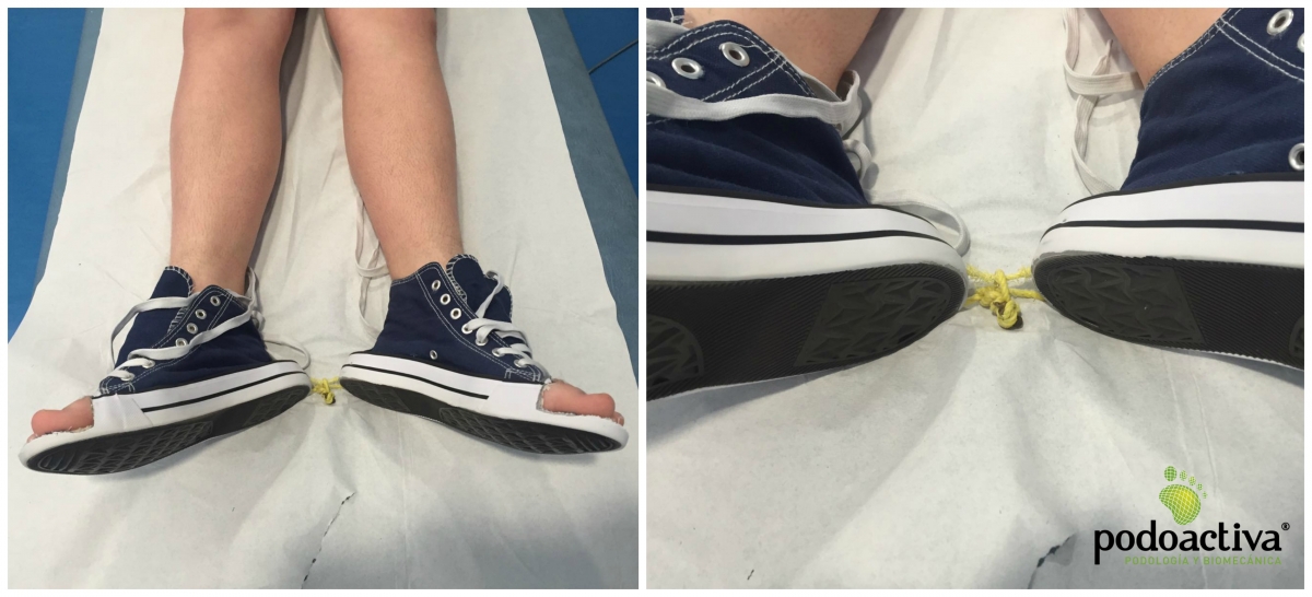 Hasta nuestras consultas acuden unos padres recomendados por su traumatólogo. El médico les ha aconsejado que su hijo lleve un dispositivo casero que simula el efecto de unas férulas Denis-Brown. Ello complementado con un estudio biomecánico de la marcha y unas plantillas personalizadas.